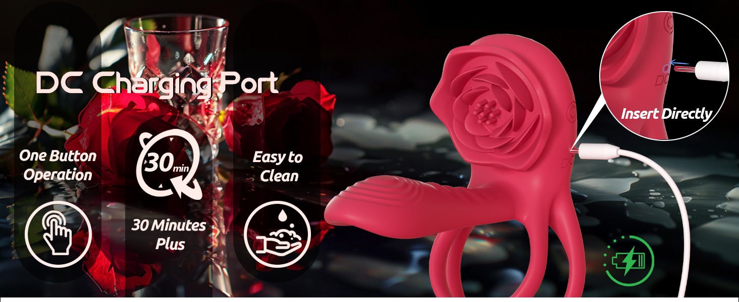 DC Charging Port & Low Noise - This Rose Love Vibrator is quiet and easy to clean, equipped with a convenient USB magnetic charging port. After fully charged, you can enjoy a long sex journey with your lover.