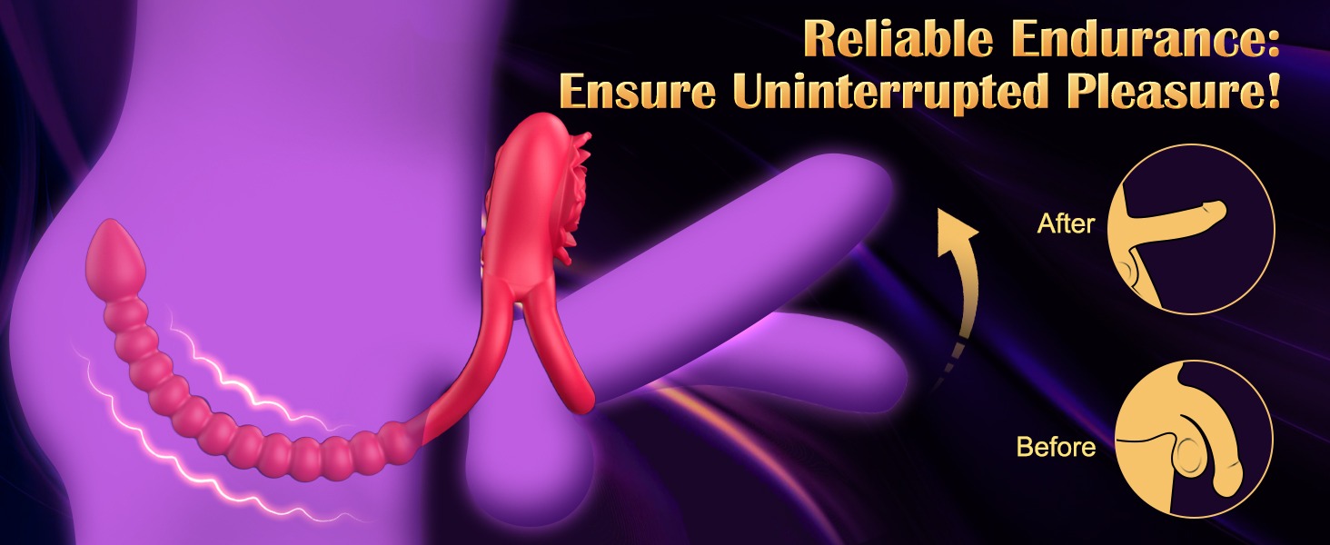 Upgraded version of synchronized penis, testicle, clitoral, anal and prostate stimulation vibrator: one ring for penis stimulation and the other for testicle contraction. When you hold the rose vibrator tightly against the clitoris, it releases powerful vibrations.