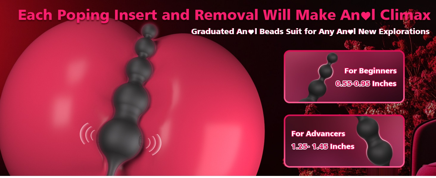 Graded Vibrating Anal Beads, Tailor-Made for Maximum Stimulation: More than just an anal training tool, these scientifically graded beads (from 0.55-0.95 inches for beginners, up to 1.25-1.45 inches for advanced) deliver satisfying tension at your own pace.