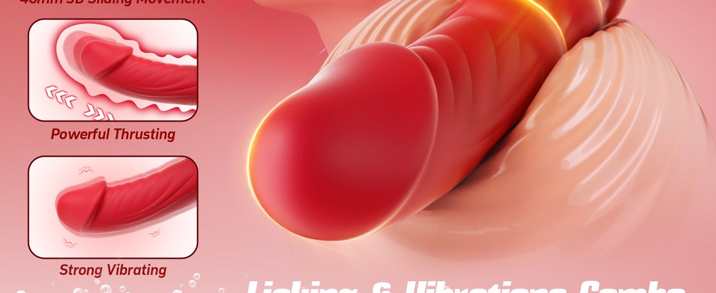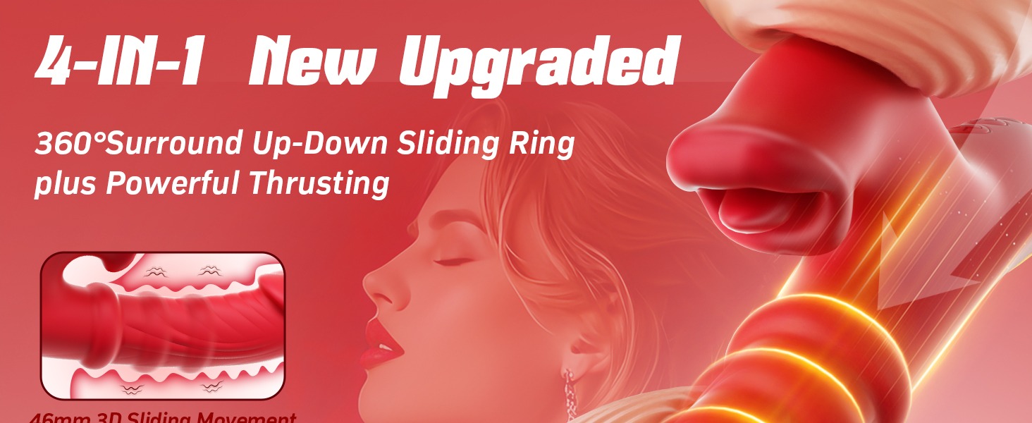 4-in-1 Thrust Vibrator plus Slide Ring - This all-in-one adult sex toy and game device combines the slide ring, thrust, licking and vibration functions to stimulate the female body, allowing you to experience a higher level of pleasure.